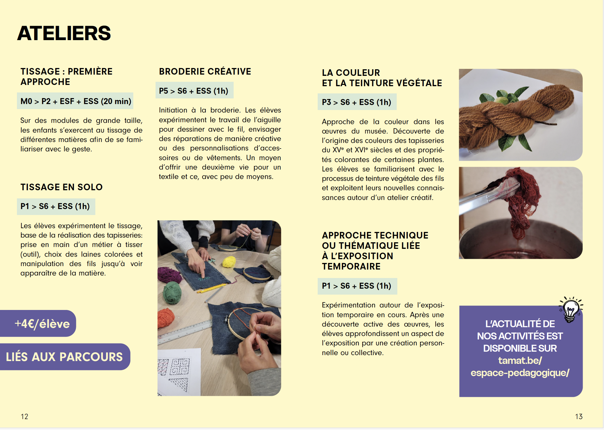 Atelier : + 4€/élève (indissociable des parcours)